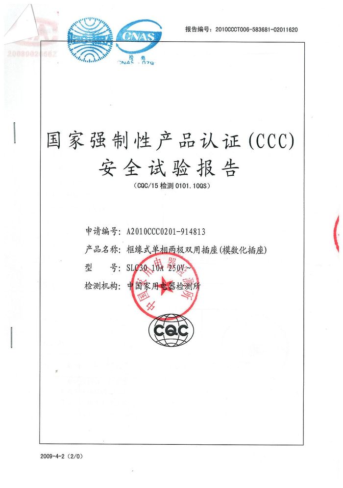 SLC30模數(shù)化插座資質(zhì)證書