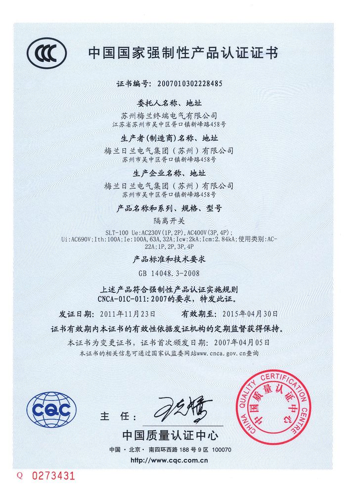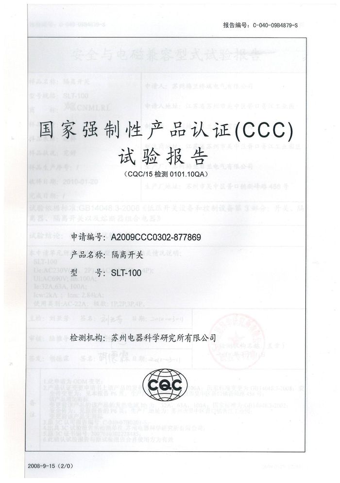 SLT-100隔離開(kāi)關(guān)資質(zhì)證書