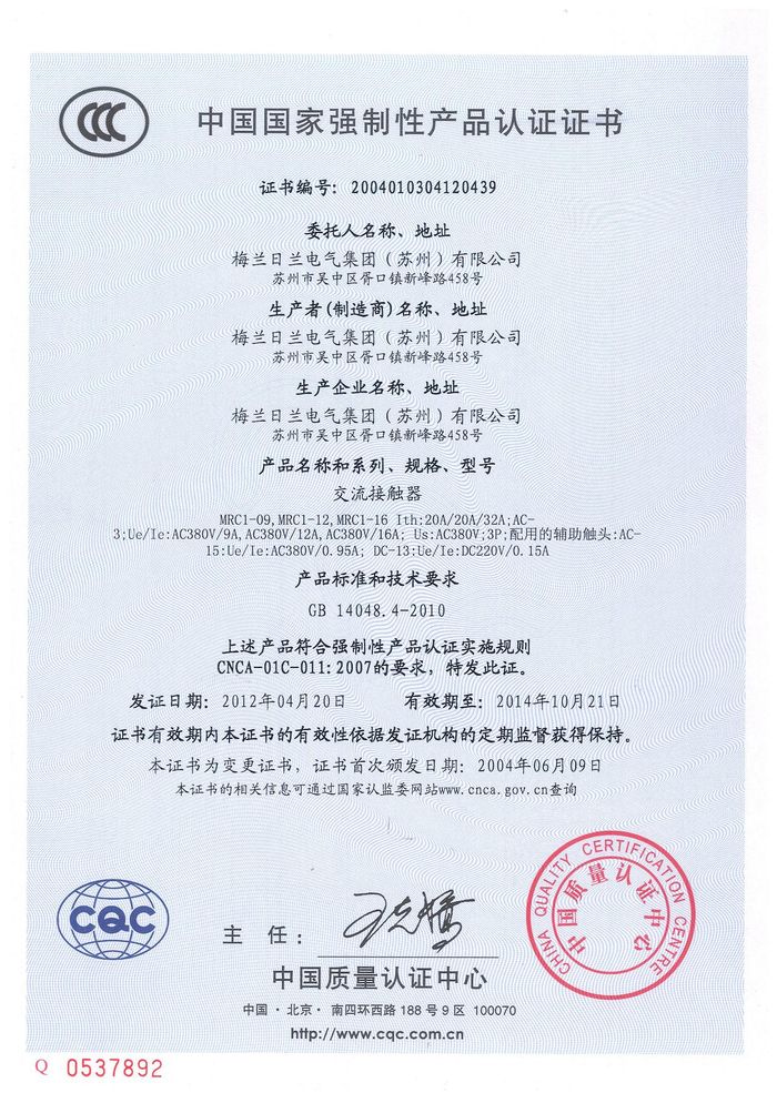 MRC1-09交流資質(zhì)證書(shū)