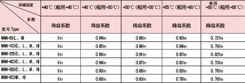 注: 以上降容系數(shù)均在通于殼架額定電流下測得
