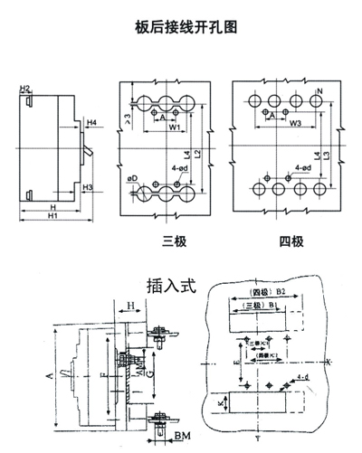 A型:N極不安裝過電流脫扣元件,且N極始終接通,不與其它三極一起合分;