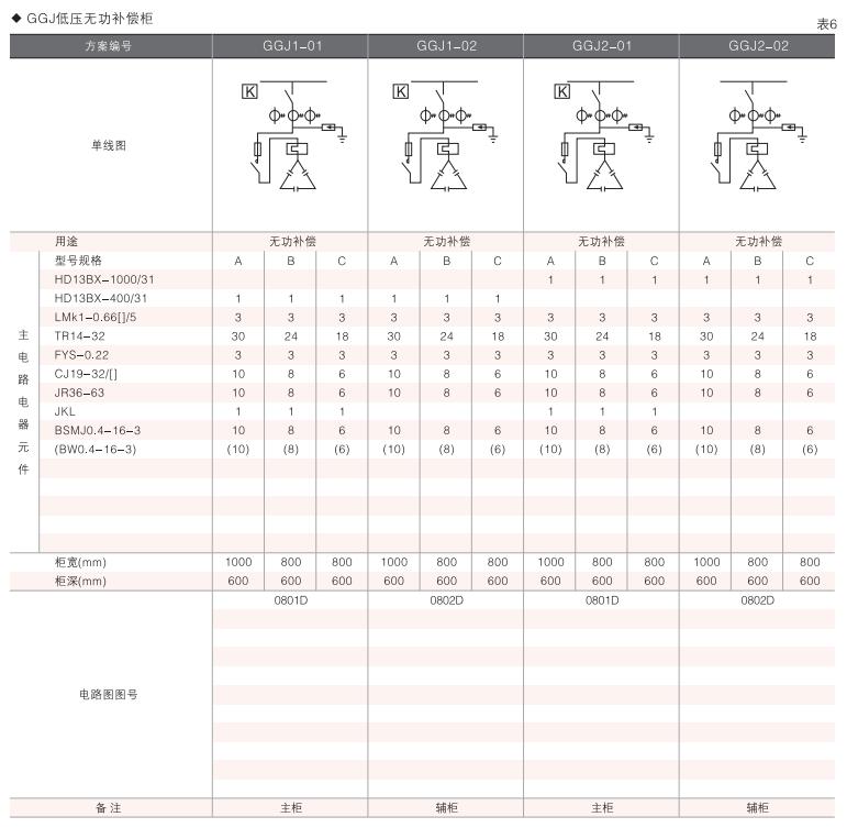 此外,為適應無功補償?shù)男枰O計了GGD電容補償柜,其主電路方案4個,共12個規(guī)格。